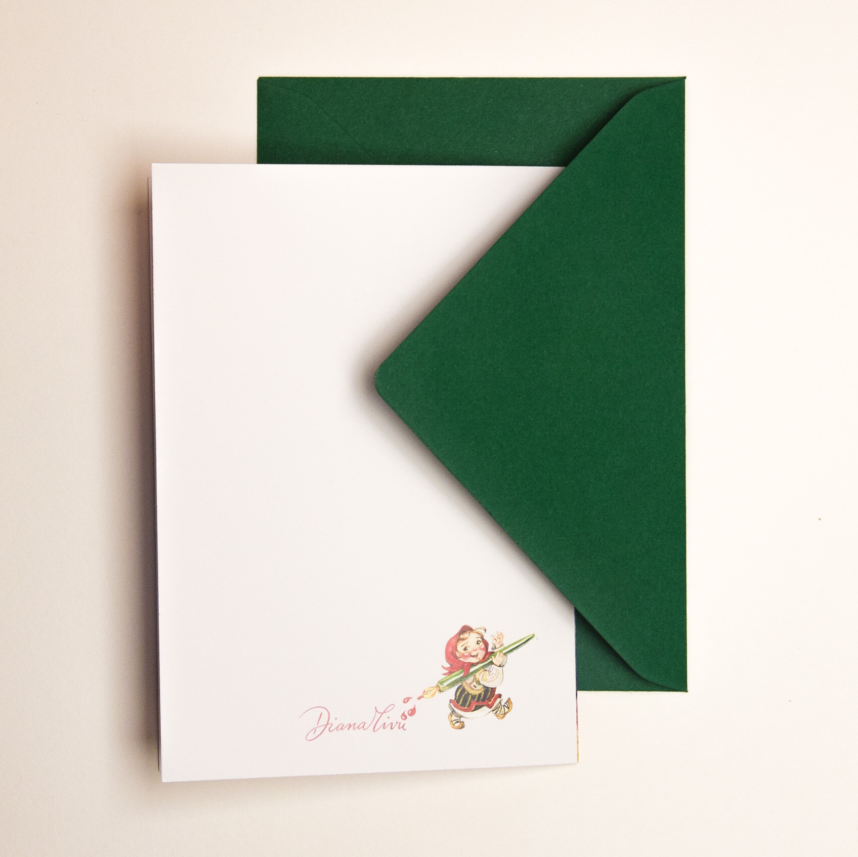 Felicitare pliată în două – 11,2 x 15,6 cm, 300g/mp, cu imagine printată pe prima pagină, semnătură pe ultima pagină și spațiu alb la interior pentru scris.