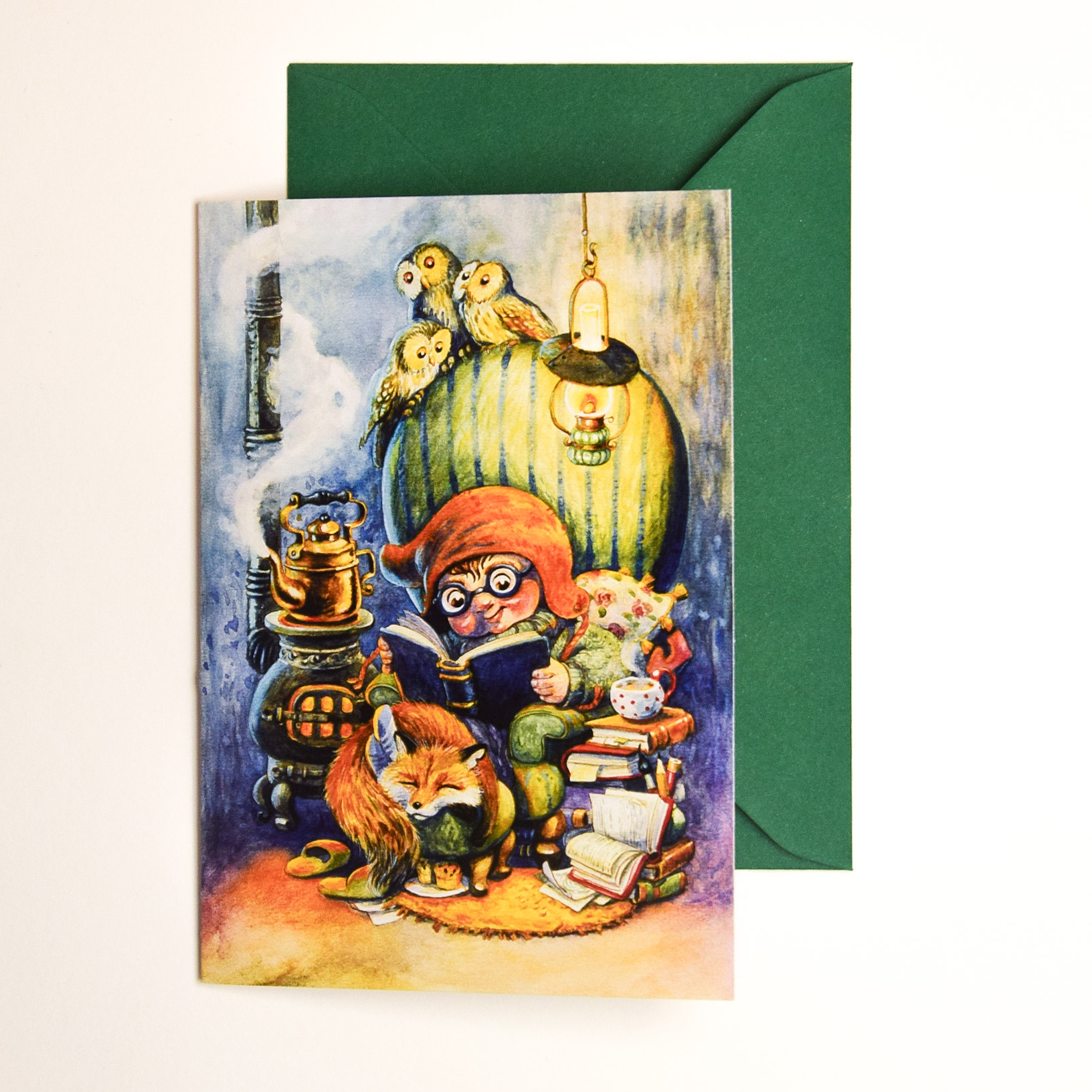 Felicitare “Căldură și cărți” cu plic asortat